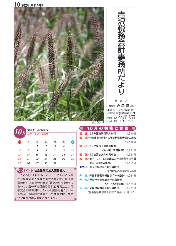 長らく紙面で皆様にご愛読いただいておりました会計事務所だよりですが、令和6年1月よりホームページに掲載することといたしました。引き続きご愛読のほどよろしくお願いいたします。